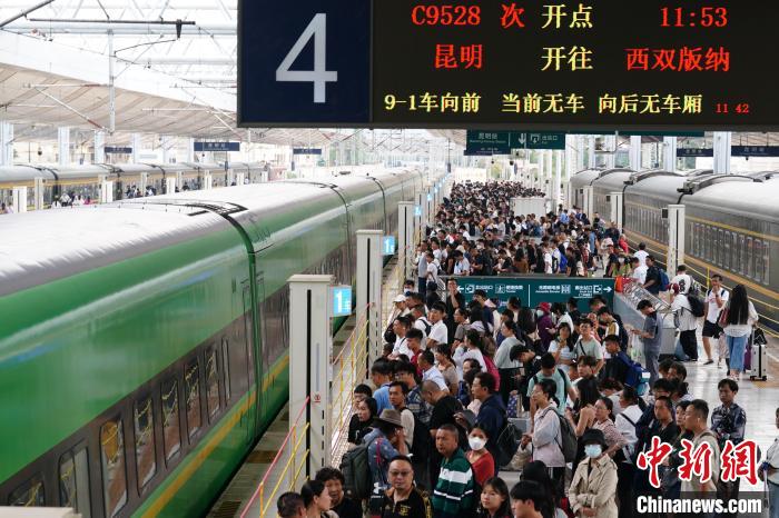 8月31日,云南昆明,旅客在昆明站候車前往西雙版納方向。當(dāng)日,為期62天的中國鐵路暑運(yùn)結(jié)束。中新社記者 劉冉陽 攝