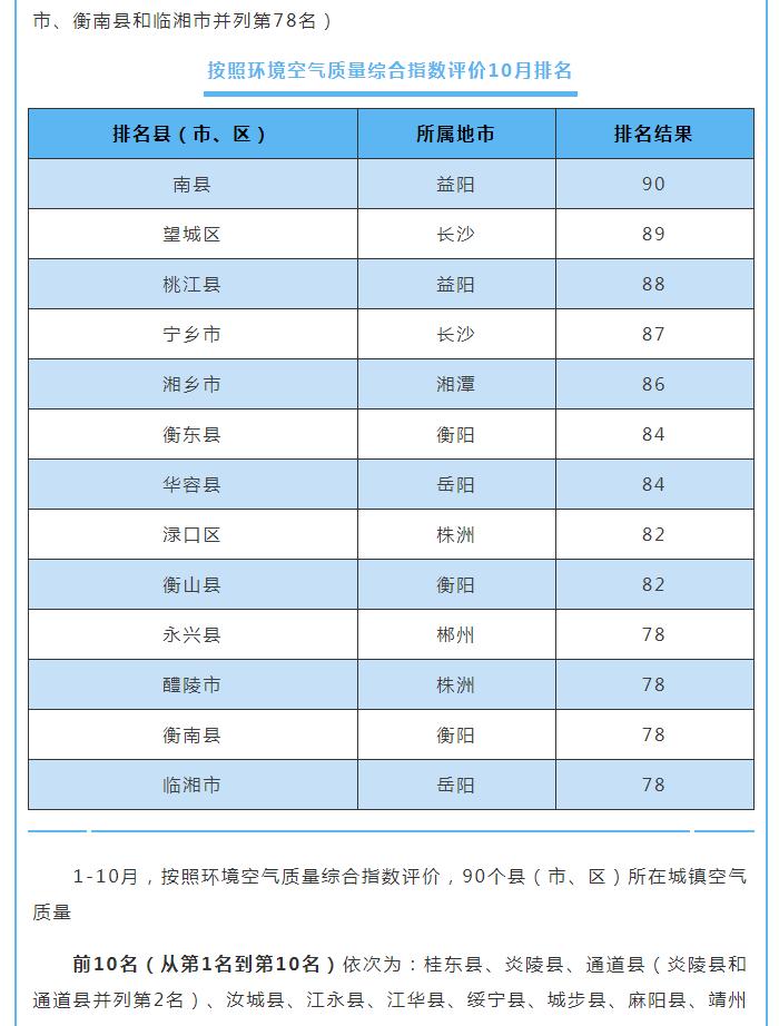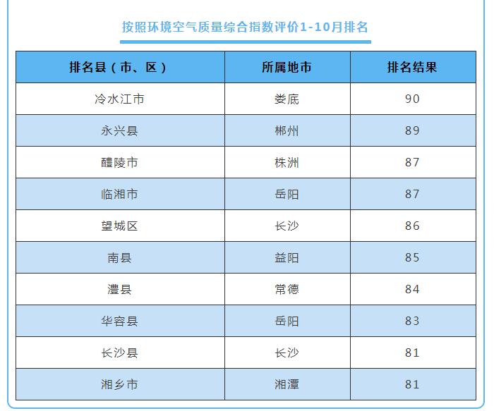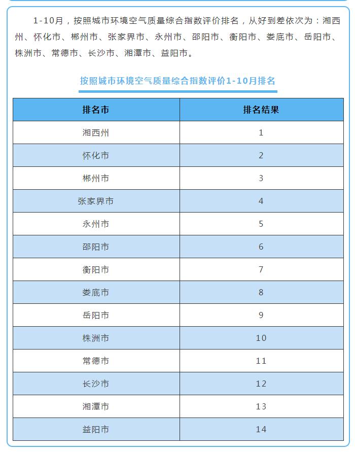 10月湖南環(huán)境空氣質(zhì)量:湘西張家界位居前茅