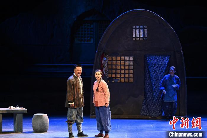 圖為甘肅省歌劇院原創(chuàng)民族歌劇《呼兒嘿喲》演出現(xiàn)場。中新社記者 九美旦增 攝