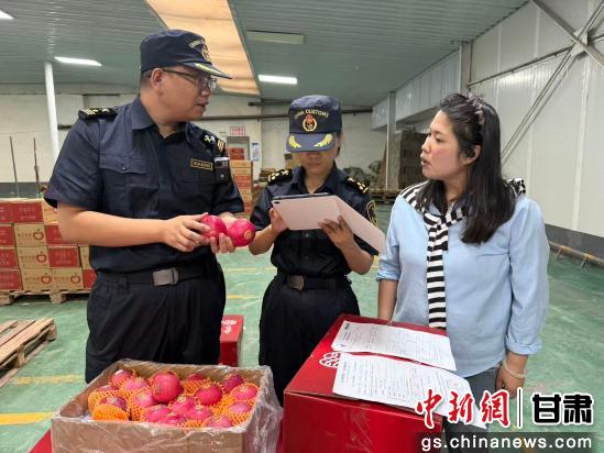 圖為8月底,蘭州海關(guān)所屬平?jīng)龊jP(guān)關(guān)員開展出口蘋果監(jiān)管。周龍 攝