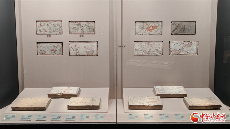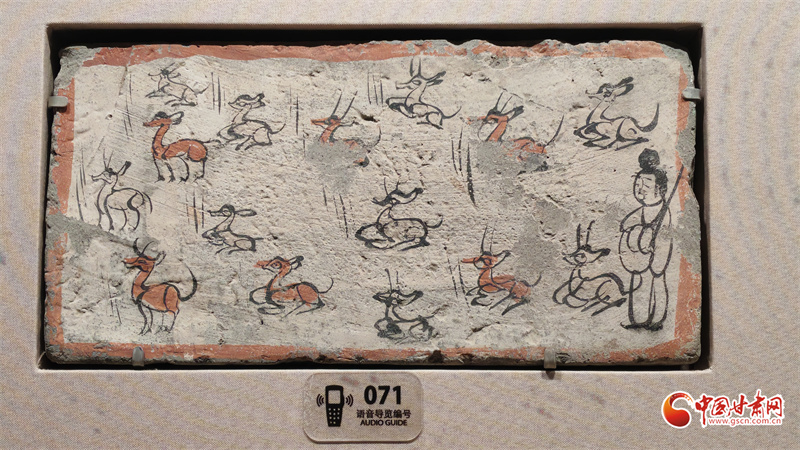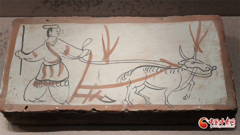 在博物館的“古冢丹青——高臺(tái)魏晉十六國(guó)時(shí)期墓葬壁畫藝術(shù)陳列”展廳里,記者看到,《二牛耕地畫像磚》生動(dòng)再現(xiàn)了當(dāng)時(shí)的農(nóng)耕技術(shù):兩頭耕牛架著直轅犁,后隨的男子一手扶犁一手揚(yáng)鞭,展現(xiàn)了典型的“二牛抬杠”耕作方式。《牧鹿圖壁畫磚》則描繪了古人放牧鹿群的獨(dú)特場(chǎng)景,為研究當(dāng)時(shí)的畜牧業(yè)發(fā)展提供了珍貴資料。