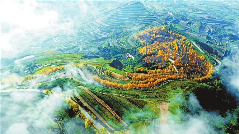 秋日的隴西縣柯寨鎮(zhèn)虎家屲村,云霧似輕紗裹滿(mǎn)山巒,村落與林帶隱入煙靄之間——黃土高原上世代耕耘出的“大地藝術(shù)”,正將自然意趣與煙火溫情,暈染成一幀秋日的水墨詩(shī)行。