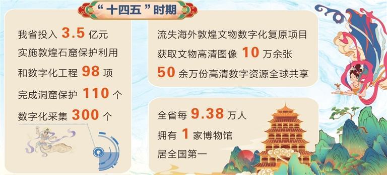 在文物保護(hù)提質(zhì)升級(jí)方面,我省投入3.5億元,實(shí)施敦煌石窟保護(hù)利用和數(shù)字化工程98項(xiàng),完成洞窟保護(hù)110個(gè)、數(shù)字化采集300個(gè),建成全球首個(gè)文物保護(hù)多場耦合實(shí)驗(yàn)室,制定國家和行業(yè)標(biāo)準(zhǔn)27項(xiàng),科研成果服務(wù)16省市及部分共建“一帶一路”國家;流失海外敦煌文物數(shù)字化復(fù)原項(xiàng)目獲取文物高清圖像10萬余張,50余萬份高清數(shù)字資源全球共享;第四次全國文物普查新發(fā)現(xiàn)線索4659條,投入24.26億元實(shí)施900余項(xiàng)重要文保項(xiàng)目;打造河西走廊國家遺產(chǎn)線路,創(chuàng)建嘉峪關(guān)長城國家文物保護(hù)利用示范區(qū),全省文物系統(tǒng)性保護(hù)成效顯著,“中國特色?敦煌經(jīng)驗(yàn)”國際影響力持續(xù)提升。